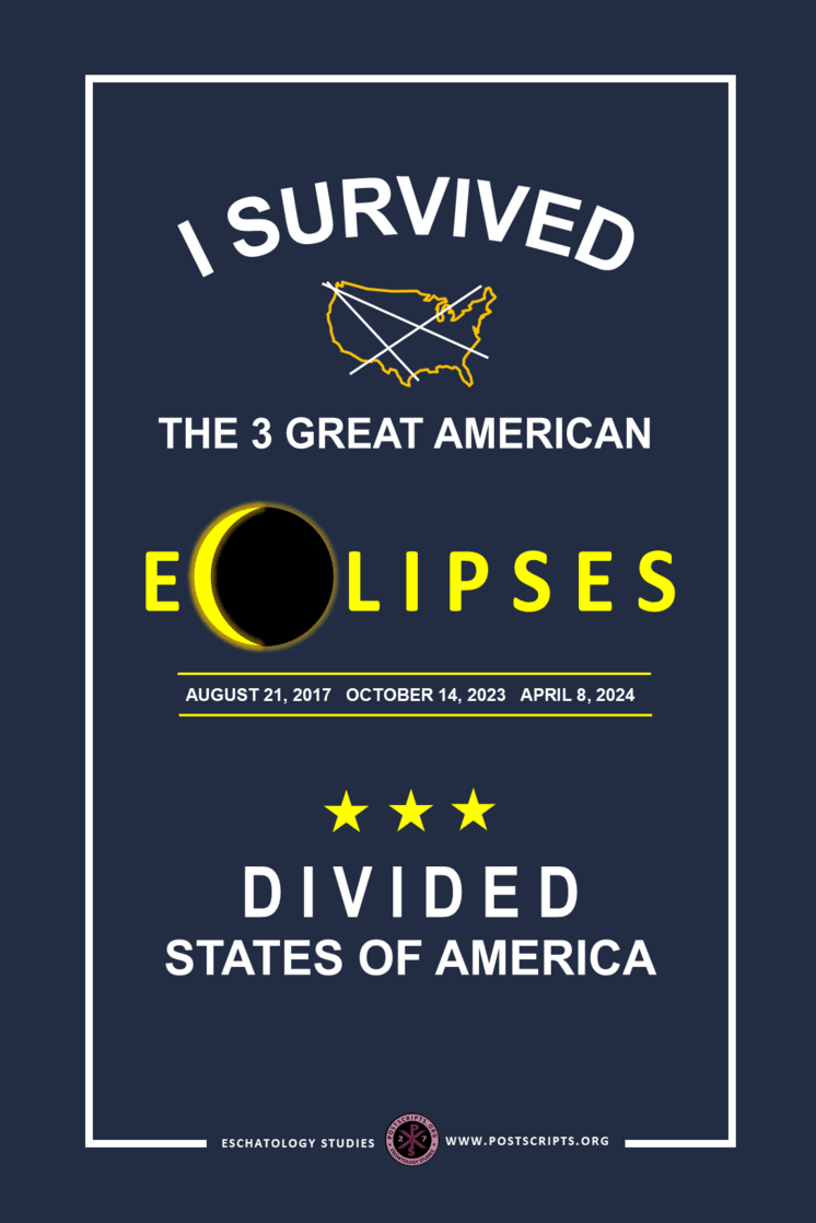 The following is the Online Link to Download a Free Poster that one made to Commemorate the 3 Great American Solar Eclipse that have Crisscrossed the Continental USA. The Eclipses Dates in which they have occurred have been on August 21, 2017, October 14, 2023 and April 8, 2024. According to Ancient Rabbinical Teachings, Blood Moons are Bad Omens for the Nation of Israel. But Solar Eclipses are Bad Omens for the Nations, etc. Will it be the case for the USA in this apparent 3-2-1 Eclipse Countdown of National Calamity?