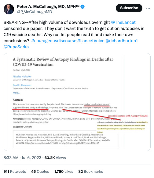 preprint and the Lancet's pathetic reason - the study had