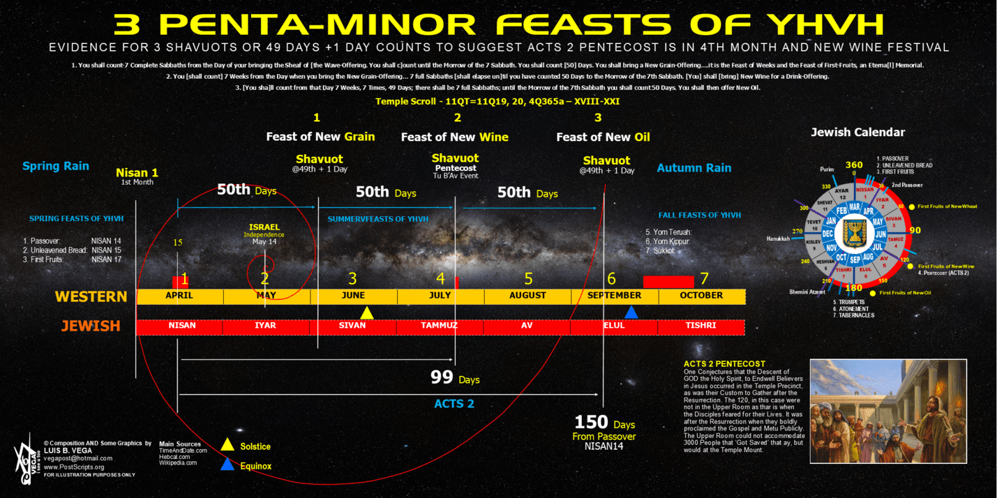 The Feast of New Wine is not on the 9th of Av. The purpose of this study is to reiterate one’s Understanding of how the Pentecost of Acts 2 was on the Feast of New Wine, but not on the 9th of Av. This added-on Supposition has taken the End Times Community by Storm, as the possible Rapture Event. This is not to diminish the Excitement for studying Prophecy of the End Times and Watching and Waiting for the Blessed Hope. But one was asked, is the 9th of Av when Pentecost was or is? In replying to that Question, it really boils down to what is one’s Start Date and why is one using that.