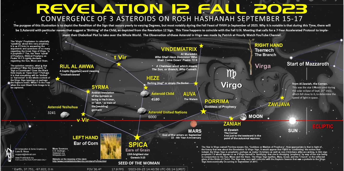That is the Asteroid called Yeshuhua, but it is because it only emerged in Virgo from its December 15, 2022 prior position in Virgo. Meaning that it was not in Virgo for 9 Months. And that on Rosh HaShanah, September 15-17, 2023, coinciding with the ‘U.N. 7 Year Covenant’, the Asteroid named Child will cross over the Imaginary Celestial Line of Virgo, denoting a Birth. True and Amazing. But a ‘Birth’ of what? In his Interpretation, it is that of the Man-Child of the Revelation 12 Chapter. He then presumes, that is to be the Rapture of the Bride of Christ. No Problem. As one best Understood this Finding, the following will then be one’s Assessment and Critique, with Respect.