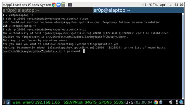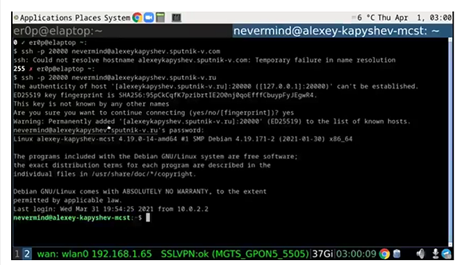 Now something I did wrong…Oh, it should be (.ru). Yes. Ljoha, I did change the Password on your Server. The one, you know, that is respectively is set for you. I did put a simple one and easy to remember. ‘StarCraft’. And now, we are in the Machine or Server. Connecting to it and seeing. Here are some Utility Sputnik V-Controls. We can see all the information about the vaccinated one. Now loading.
