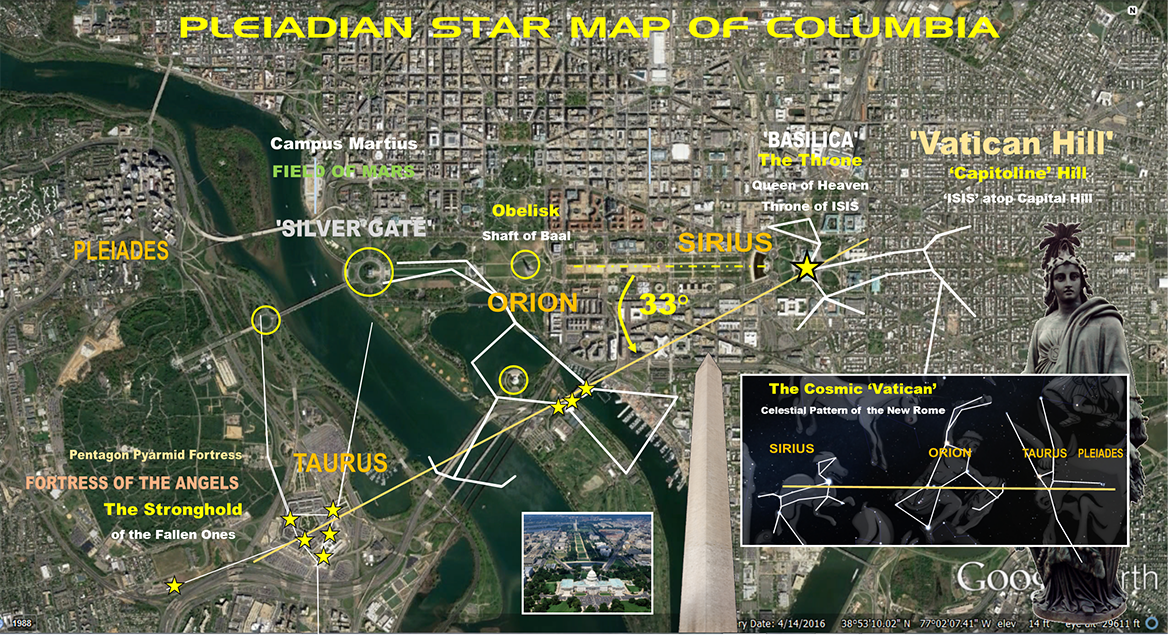 In part, Lucifer has come to Earth and currently has set-up his Throne through lies, trickery and thievery in beguiling Eve in the Garden of Eden. Lucifer as Ala-lu has interjected himself in the cause of make Humanity ‘fall’ and geoengineering it into his ‘Image and Likeness’. This tri-structure Martian Motif is ingeniously encrypted in the most prominent ancient capitals of the world. The Martian Motif was incorporated in the most worship sites and temples. This very same Martian Motif is incorporated in the modern capitals around the world today. The ley-lines might vary as the orientation is either rotated, reversed or flipped. The signature marks are incorporated in either stadiums, race tracks or monuments. The 3 structure Martian Motifs usually will correspond to the financial center of the city which correlates to the 7 Pyramid City based on the Pleiades. The Pentagon Pyramid Fortress will usually correspond to a fortified structure or configuration that exemplifies a 5-sided geometric configuration.