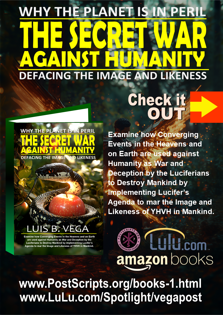 There is a Secret War Against Humanity being waged on Earth, presently. In regard to Humanity, it started in Eden. However, this War is Ancient. It started before Adam and Eve were placed in Eden on Earth. This War is against you, the Reader of this Book. It is against your Family, your Marriage, your Job, your City, your State or Provence, your Nation. It is a Full Spectrum Dominance that is the Luciferian Agenda that also wages War against ones Body and Mind. But what is the Prize, is ones Soul. Why?