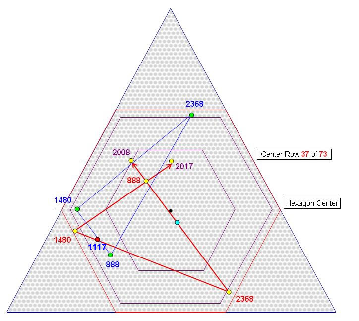 There is no way chance has anything to do with it. Bob's red line joining Jesus (888) and Jesus Christ (2368) points to year 2008. Bob's red line joining Christ (1480) and Jesus Christ (2368) intersects stone 1117 with my blue line joining Jesus (888) and Christ (1480).