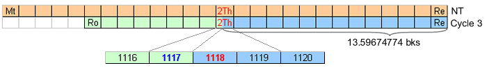 In the illustration below, the top bar shows the MIDDLE position occupied by the book of 2 Thessalonians in the New Testament. The bar below it represents the 22 Epistles of Cycle 3 of the Bible Wheel from Romans to Revelation; this bar is sectioned according to the Golden Ratio.